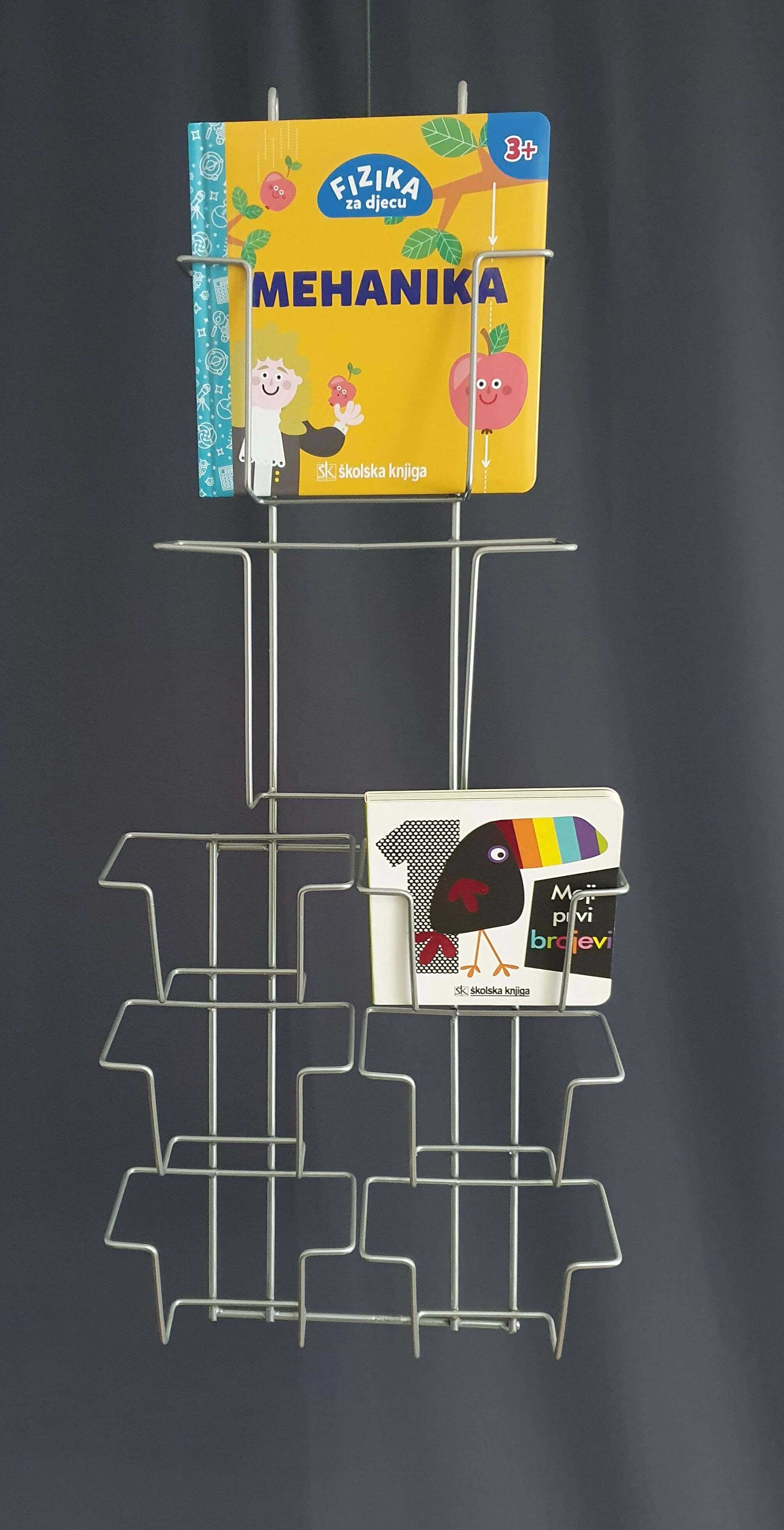 Konkretnim, čvrstim i dobro dizajniranim žičanim i metalnim stalcima za knjige, slikovnice, autokarte, turističke vodiče i brošure dobili ste samostalnu reklamno - izlagačku policu, za Vaše proizvode, koja se može uklopiti u svaki prostor unutar trgovačkog centra ili reklamni stalak u Vašem prodajnom prostoru.Stalci mogu biti statični na nogicama ili mobilni na kotačima, za vrlo lako postavljanje ili manipuliranje na prodajnim mjestima na javnim površinama, tržnicama,izlaganju na sajmovima, turističkim središtima.Ovisno o potrebama,plastifikacija može biti u boji prema želji kupca.Slobodno nam se obratite i zatražite mišljenje ili savjet te izradu stalaka, polica, držača i raznih drugih proizvoda od žice,cijevi i lima prema Vašoj potrebi. Rado ćemo Vam izaći u susret i zajedno proizvesti stalak koji zadovoljava sve Vaše potrebe bez obzira na količinu, kako bi se Vaš proizvod dobro reklamirao, bio uočljiv i dostupan kupcima.